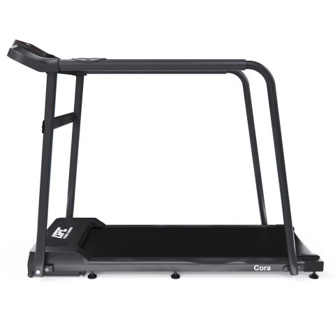 Электрическая беговая дорожка DFC Cora — идеальный выбор для домашнего использования, обеспечивающий комфортные условия для тренировок в спортивных и реабилитационных целях. Модель отличается присутствием в комплектации специальных удлинённых поручней для реабилитационных занятий. С максимальным весом пользователя до 115 кг и мощным двигателем с пиковым значением 1,5 л/с, эта модель подходит как для начинающих, так и для опытных спортсменов. Скоростной диапазон от 0,8 до 8 км/ч позволяет легко адаптировать тренировки под ваши индивидуальные потребности. Беговое полотно размером 100 х 39 см обеспечивает достаточное пространство для комфортного бега или ходьбы. Система амортизации с 6 резиновыми амортизаторами снижает нагрузку на суставы, что делает тренировки более безопасными и приятными. Беговая дорожка оснащена монохромным LCD-дисплеем, который отображает ключевые параметры: скорость, дистанцию, время, калории и пульс. Измерение пульса осуществляется с помощью сенсорных датчиков на поручнях. Для разнообразия тренировок предусмотрено 12 предустановленных программ, а также одна пользовательская программа, что позволяет вам настроить занятия под свои цели. Дополнительные удобства включают транспортировочные ролики для легкого перемещения и подставку под планшет, чтобы вы могли наслаждаться любимыми фильмами или музыкой во время тренировки, а карманы для мелочей помогут вам удобно разместить необходимые аксессуары.