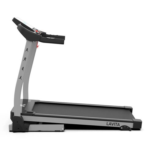 Электрическая беговая дорожка LAVITA для занятий дома. Тренажер начального уровня с мотором мощностью 1,75 л.с. Шаг изменения скорости беговой дорожки 0,1 км/ч. 12 встроенных программ, скорость от 1 до 14 км/ч и возможность регулировки угла наклона бегового полотна в 3-х положениях (0, 2 и 5 градусов) помогут разнообразить ваши ежедневные тренировки. Складная конструкция с помощью встроенного амортизатора позволят легко поднять полотно после тренировки и экономить пространство до следущего занятия. На поручнях расположены датчики пульса. Для точности измерения частоты сердечных сокращений (ЧСС) во время тренировки рекомендуем приобрести отдельно набор DFC W117: кардиопояс + часы - монитор. Показания консоли: скорость, время, расстояние, калории, пульс. Бутылку воды или смартфон во время тренировки возможно хранить в удобных кармашках по краям от панели управления.