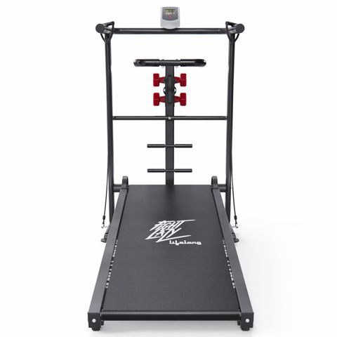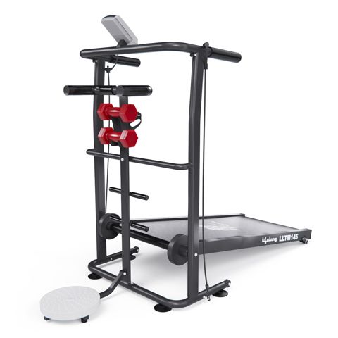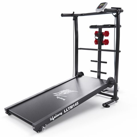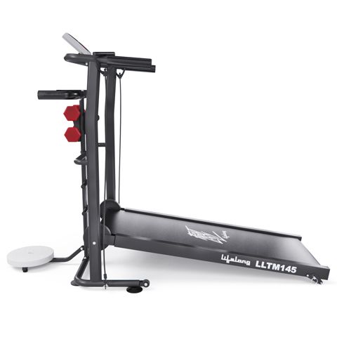 Беговая дорожка Lifelong LLTM145 – это профессиональное устройство для домашних тренировок, позволяющее поддерживать физическую активность и формировать здоровые привычки! Эргономичный дизайн и функциональность делают ее отличным выбором для людей, стремящихся к тренировкам без необходимости покидать свой дом. Беговая дорожка может безопасно использоваться пользователями с весом до 100 кг. Это делает ее доступной для широкого круга людей и предоставляет надежность в процессе тренировок. Размер бегового полотна 110 х 40 см обеспечивает комфортную площадь для бега и ходьбы. Механическая система регулировки угла наклона на 2 уровня дает возможность изменять интенсивность тренировки, что позволяет разнообразить тренировочный процесс и задействовать различные группы мышц. Находясь под углом, дорожка разгоняется под собственным весом пользователя. Пользователь может самостоятельно регулировать скорость тренировок, начиная с медленного шага и переходя к более интенсивным упражнениям. LCD дисплей отображает ключевую информацию во время тренировок: время, пройденное расстояние, сжигаемые калории и скорость. Это упрощает отслеживание прогресса и способствует повышению мотивации. Дополнительные аксессуары, такие как эспандеры, гантели и твистер, позволяют разнообразить тренировки. Это помогает прорабатывать не только ноги, но и руки и корпус, что делает занятия более комплексными и эффективными. Удобный держатель для бутылки гарантирует, что вода всегда под рукой, а транспортировочные ролики помогают просто и удобно переносить дорожку из одного места в другое без лишних усилий. Возможность складывания делает эту дорожку идеальным вариантом для использования в ограниченных пространствах. Простая и быстрая система складывания позволяет легко убирать дорожку, когда она не используется.