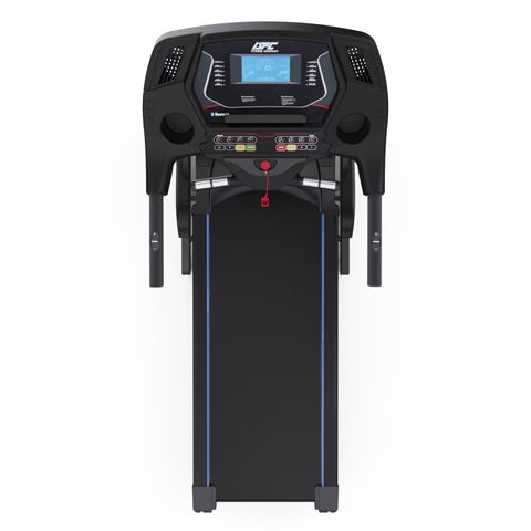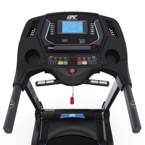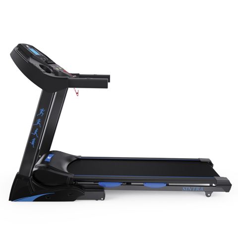 Беговая дорожка SINTRA предназначена для полноценных домашних тренировок. В арсенале модели двигатель постоянного тока мощностью 4 л.с. Шаг изменения скорости дорожки 0,1 км/ч. Многослойное беговое полотно размером 54х150 см. Система амортизации поможет сохранить суставы про время продолжительной тренировки. Угол наклона бегового полотна изменяется с помощью встроенного электромотора до 22%. Встроенные динамики звуковой системы и возможность подключения дополнительных устройств через разъемы MP3 и USB помогут провести тренировку под любимую мелодию. Два комплекта встроенных в поручни датчиков пульса позволят следить за частотой сердечных сокращений. Такие датчики имеют определенную погрешность. Для точности показаний рекомендуем приобрести нагрудный пояс с монитором в форме часов DFC W117. Показания консоли: скорость, время, расстояние, калории, пульс. На поручнях так же расположены "быстрые кнопки" - это кнопки запуска и остановки бегового полотна, а так же кнопки изменения скорости. Это позволяет не отрывать руки с поручней во время занятий не тренажере. Дорожка имеет складную конструкцию для экономии жизненного пространства с помощью гидроцилиндра. И встроенные колеса для перемещения дорожки после тренировки.