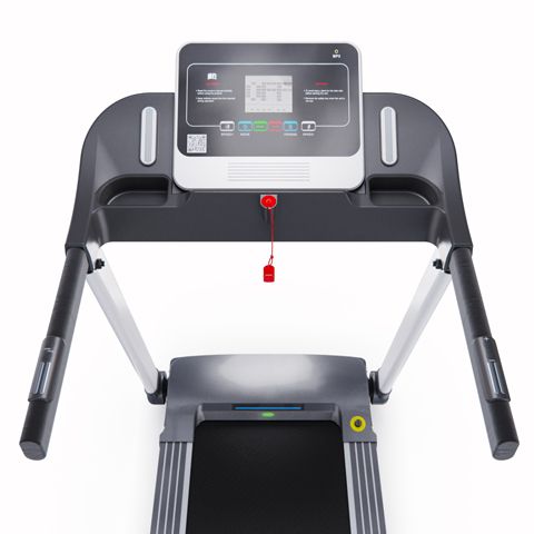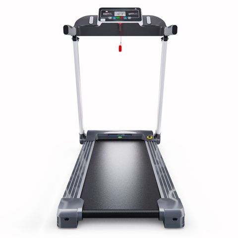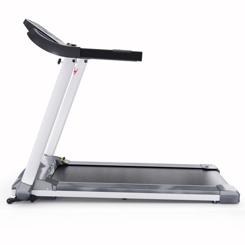Беговая дорожка DFC T-X510 — отличный выбор для занятий спортом дома. Она оснащена электрическим двигателем с пиковой мощностью 3 л.с., который позволяет развивать скорость от 1 до 12 км/ч. Беговое полотно имеет размеры 121 х 41 см (в развёрнутом виде — 252 х 41 см), что обеспечивает комфорт во время тренировки. Амортизационная система состоит из 6 амортизаторов, которые снижают нагрузку на суставы и позвоночник. Для удобства пользователей предусмотрены сенсорные датчики пульса на поручнях, транспортировочные ролики и компенсаторы неровности пола. Монохромный LCD-дисплей размером 4 дюйма отображает время, скорость, дистанцию, калории и пульс. В дорожке есть MP3-вход и 12 встроенных программ, а также поддержка приложения SPAX с помощью Bluetooth-соединения. Максимальный вес пользователя составляет 120 кг, что делает эту модель подходящей для большинства людей. Дорожка легко складывается, что облегчает её хранение. В комплекте идут держатель для планшета и бутылки.