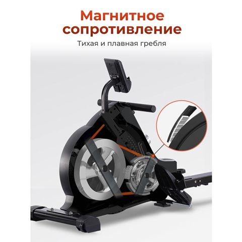 Гребной складной тренажер DFC ECHANFIT CRW4107A-N — это удобный и функциональный тренажёр для домашнего использования с магнитной системой нагрузки. Он сочетает эффективность, комфорт и простоту эксплуатации, помогая поддерживать отличную физическую форму и тренировать всё тело. Модель рассчитана на пользователей весом до 120 кг. Удобное сиденье обеспечивает комфорт во время тренировки, позволяя сосредоточиться на выполнении упражнений. Слайд длиной 64,3 см обеспечивает естественную амплитуду движений и комфорт при каждом гребке. Эргономичная конструкция способствует правильному положению тела, снижая нагрузку на спину и суставы. В модели установлен Bluetooth для подключения к приложению с онлайн тренировками FITSHOW. Магнитная система с механической регулировкой предлагает 16 уровней нагрузки, позволяя легко адаптировать интенсивность тренировки под индивидуальные цели и уровень подготовки, а вес маховика 3 кг способствует плавной и стабильной работе тренажёра, создавая комфортные условия для длительных и эффективных тренировок. Тренажёр оснащён монохромным LCD-дисплеем, отображающим ключевые показатели тренировки — время, дистанция, ватт, калории, гребки в минуту, время на 500 м, количество гребков, общий счетчик гребков. Это помогает отслеживать прогресс и контролировать результативность занятий. В комплект входят две батарейки типа AAA, необходимые для работы дисплея. Этот гребной тренажер оснащен функцией Bluetooth, вы можете подключиться к FitShow и Kinomap через Bluetooth. Тренажёр складной, что позволяет компактно хранить его в сложенном виде, экономя пространство в квартире или доме. Компактные габариты в сложенном состоянии делают его удобным для хранения даже в небольших помещениях. Рифленые педали с регулируемыми ремешками обеспечивают надежную фиксацию ног. Также есть компенсаторы неровности пола, которые гарантируют стабильность тренажера, а транспортировочные ролики обеспечивают лёгкое и удобное перемещение, позволяя без труда менять его расположение в помещении. Гребной тренажер DFC ECHANFIT CRW4107A-N — компактный и удобный для домашних тренировок. Он оснащён подставкой под планшет и держателем для бутылки, что обеспечивает комфорт и удобство во время занятий. Плавное сопротивление и надёжная конструкция делают тренировку эффективной и безопасной. Гарантия на детали подверженные естественному износу в процессе эксплуатации — до 6 месяцев с момента установки тренажера при условии регулярного планового ТО. Важно: гарантия не распространяется на преждевременный износ из-за чрезмерной эксплуатации тренажера.