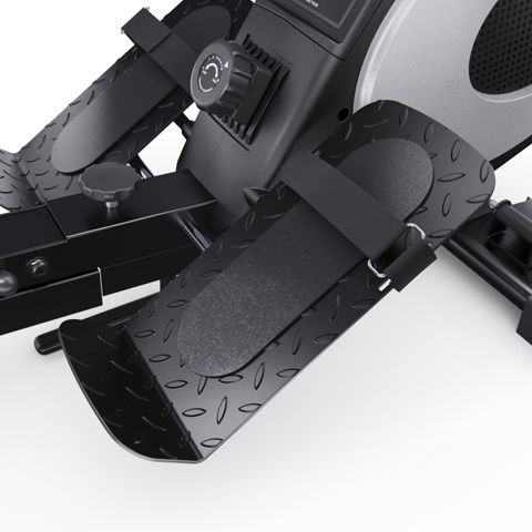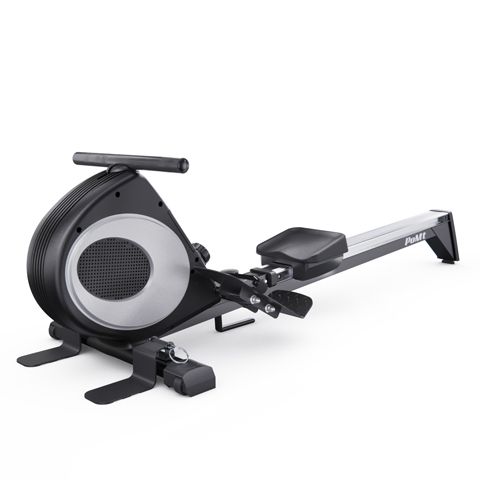 Гребной тренажёр DFC PoMt черного цвета — отличный выбор для домашних тренировок! Максимальный вес пользователя составляет 120 килограммов, что делает тренажер подходящим для людей с разной физической подготовкой. Гребной тренажёр для дома идеально подходит для укрепления мышц верхней части тела и развития выносливости. Кардиотренажер для ног и рук оснащён маховиком весом 4 килограмма и имеет магнитную систему нагрузки, что обеспечивает плавный и тихий ход. 8 уровней нагрузки. Монохромный LCD-дисплей отображает основные параметры тренировки, такие как время, количество гребков, общее количество гребков и калории, а также имеет режим сканирования. Размер консоли 10,5 х 11 х 3 см. В рабочем состоянии гребной тренажер кардио имеет размеры 190 x 58 x 50 см, а также имеет компактные размеры в сложенном виде (123 x 58 x 124 см) и транспортировочные ролики, что позволяет удобно его хранить и легко перемещать его по дому. Домашний кардиотренажёр DFC PoMt для ног и рук — отличный выбор для интенсивных тренировок, активного образа жизни и похудения!