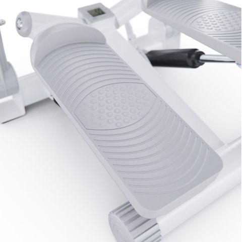 Министеппер поворотный DFC SQ-S085C с прямыми поручнями — это компактный и удобный тренажёр для домашних тренировок. Занятия на нём идеальны для укрепления сердечно-сосудистой системы, развития дыхания и координации движений. Министеппер предназначен для пользователей весом до 100 кг и оснащён гидравлической системой нагрузки с взаимозависимым ходом педалей, что обеспечивает равномерное распределение нагрузки на ноги. Регулировка нагрузки механическая, осуществляется поворотом ручки регулятора. В комплекте со степпером идёт смазка и 1 батарейка тип LR44. Монохромный LCD-дисплей степпера показывает такие параметры, как время, калории, количество шагов и количество шагов в минуту. Это позволяет легко отслеживать прогресс и контролировать эффективность каждого занятия. Министеппер оснащён рифлёными педалями, которые обеспечивают комфорт и стабильность при каждом движении. Небольшое расстояние между педалями способствует правильному положению ног и помогает снизить нагрузку на суставы. Благодаря регулируемой высоте педалей можно легко менять интенсивность занятий и адаптировать тренировку под свой уровень подготовки. Министеппер DFC SQ-S085C подходит для ежедневных кардио тренировок в домашних условиях. Он прост в использовании, не занимает много места и помогает эффективно укрепить мышцы ног и улучшить выносливость. Гарантия на детали подверженные естественному износу в процессе эксплуатации — до 6 месяцев с момента установки тренажера при условии регулярного планового ТО. Важно: гарантия не распространяется на преждевременный износ из-за чрезмерной эксплуатации тренажера.