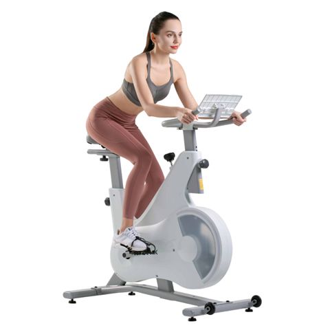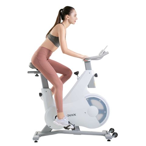 Спин-байк DFC OVICX Q210 белого цвета — отличный вариант для тех, кто желает проводить качественные кардио-тренировки прямо у себя дома, имитируя катание на настоящем велосипеде. Тренировки на спин-байке помогают укрепить ноги, ягодицы и живот, улучшить кардиореспираторную систему и сбросить вес. Велотренажёр выдерживает вес до 150 кг и подходит для пользователей ростом от 150 до 190 см. Инерционный вес маховика 15 кг гарантирует плавное движение и настройку степени нагрузки. Обернутый вокруг маховика ремень обеспечивает минимальный уровень шума, что делает тренажер кардио оптимальным вариантом для использования дома. Для того, чтобы разнообразить свои тренировки, подключайтесь к приложению OVICX APP. На тренажере для ног можно регулировать сиденье по высоте и по горизонтали, что дает возможность настраивать положение тела на сиденье. Регулируемые педали велотренажера для ног предотвращают проскальзывание, что позволяет получить больше контроля во время езды. Профессиональный руль велотренажора с разными видами хвата и покрытием, устойчивым к скольжению и поту, гарантирует удобство и безопасность в процессе тренировки. Регулировка руля по высоте дает дополнительное удобство и разнообразие. Транспортировочные ролики помогают быстро и с легкостью перемещать тренажер в нужное для вас место, а подставка под планшет и держатель для бутылки сделают ваши тренировки ещё более комфортными. Кардиотренажер для ног и рук домашний DFC OVICX Q210 — идеальный выбор для поддержания активности и здорового образа жизни!