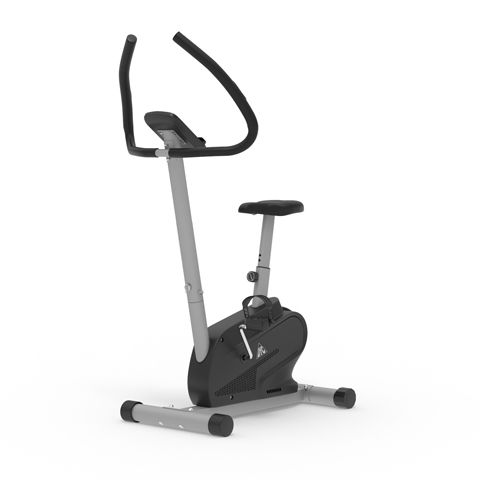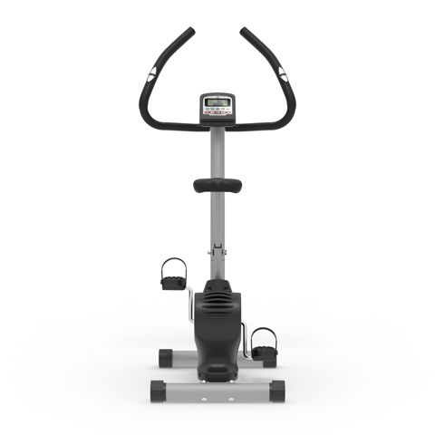 Велотренажер DFC B5901P вертикальной конструкции прекрасно подходит для домашнего применения. Особенности тренажёра Система нагрузки Электромагнитная система нагрузки регулируется электронным способом с консоли. Маховик Вес маховика — 5 кг(инерционный вес 7 кг), расположен под сиденьем. Гарантирует плавность хода при занятии. Конструкция тренажёра Для хорошей устойчивости на неровном полу предусмотрены компенсаторы. Предельно допустимый вес — 110 кг. Измерение пульса Показатели считываются датчиками на поручнях. Для лучшего контроля рекомендуется дополнительно приобрести набор: нагрудный кардиодатчик + часы-монитор DFC W117. Сиденье Комфортное водонепроницаемое сиденье из мягкого полиуретана регулируется по вертикали в 6 положениях. Педали Оснащены рифлёным покрытием и ремнями с регулировкой по ширине стопы. Консоль и дисплей Монохромный LCD дисплей, расположенный на передней консоли, выводит основные параметры тренировки. Также есть держатель для телефона или планшета, предусмотрена 21 программа тренировок.