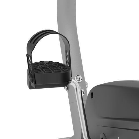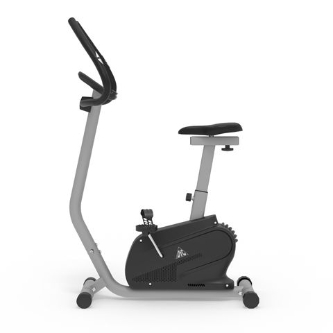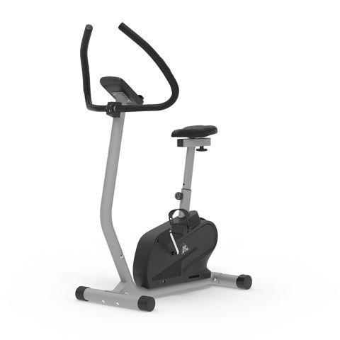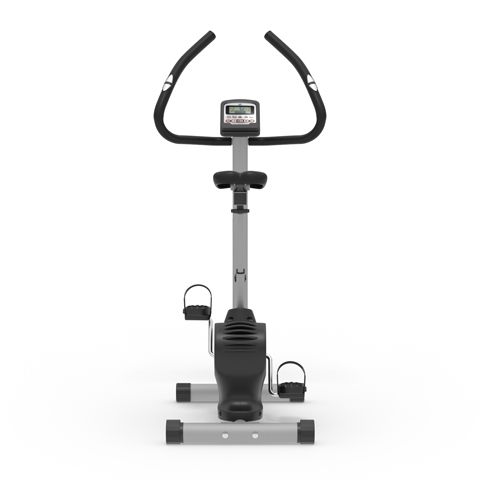 Велотренажер DFC вертикальный B5906P Вертикальный велотренажер DFC B5906P идеально подходит для домашнего использования. Особенности тренажёра Система нагрузки Велотренажёр оснащён электромагнитной системой нагрузки с электронной регулировкой с консоли. Маховик Расположен под сиденьем, весит 5 килограмма. Обеспечивает плавность хода при занятии. Конструкция Предельно допустимый вес — 120 кг. Устойчивость на неровном полу обеспечивают специальные компенсаторы. Измерение пульса Пульс считывается сенсорными датчиками на поручнях и выводится на экран. Для дополнительного контроля можно приобрести нагрудный кардиодатчик + часы-монитор модели DFC W117. Сиденье Сиденье с обивкой из водонепроницаемого полиуретана регулируется в 2-х положениях по горизонтали и 6-ти по вертикали. Педали Оснащены регулируемыми ремнями и рифлёным покрытием для предотвращения скольжения. Консоль и дисплей Монохромный LCD дисплей с синей подсветкой выводит основные параметры занятия. Также на передней консоли имеется подставка под телефон или планшет. Предусмотрена 21 программа тренировки.