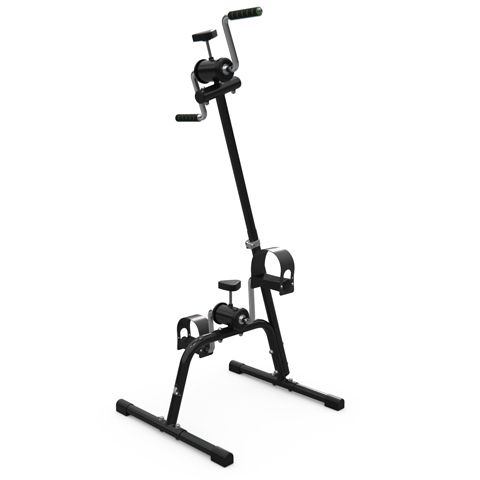 Педальный велотренажер B6008 dual bike для рук и ног. Уникальная конструкция разработана специально для реабилитации, и в дальнейшем адаптирована для людей с различной физической подготовкой. Рекомендуется также для занятий пожилым людям. Занятия на тренажере помогают улучшить кровообращение и координацию движения, сжигается жир, мышцы приводятся в тонус. Стойка велотренажера с регулировкой позволяет установить оптимальную высоту верхних педалей для удобства занятий людям разной комплекции. Педали для ног оборудованы резиновыми ремешками. Занятия на тренажере выполняются сидя на стуле, кресле и любимом диване. Необходимую нагрузку (сопротивление) педалей можно отрегулировать отдельно для рук и для ног с помощью удобной пластиковой ручки.