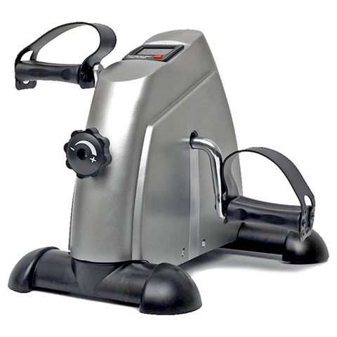 B12G - Мини велотренажер для домашнего использования, с механической системой изменения нагрузки. Подходит для тренировки ног и рук. Регулировка ремней педалей. Компьютер: скан, время, расстояние, обороты в минуту, скорость, калории. Питание компьютера от ААА батарейки 1.5В, входит в комплект.