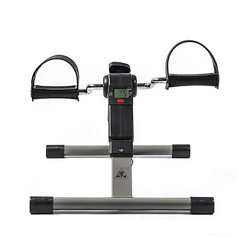Самый простой и надежный мини-велотренажер для домашних тренировок. Идеально подходит для тренировки рук и ног. Широкие педали с регулируемыми ремешками. Быстро изменить нагрузку во время тренировки можно с помощью механической ручки. При занятии обязательно использовать стул, не рекомендуется вставать на велотренажер всем весом. Складная конструкция. Проверить пульс (ЧСС) и калории можно с помощью набора DFC W117 Нагрудный кардиопояс + часы (приобретается отдельно) Компьютер с ЖК-дисплеем отображает следующие параметры тренировки: время, калории, количество шагов, количество шагов в минуту, сканирование. Питание компьютера от батарейки LR44/AG13, 1.5 В, не входит в комплект.