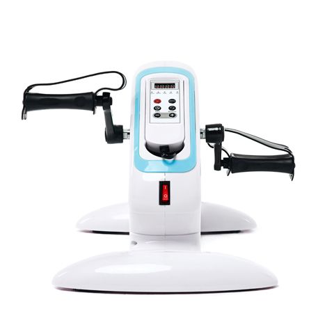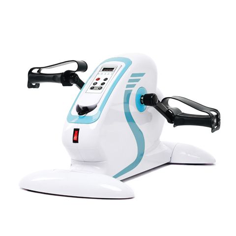 Компактный велотренажёр DFC B818B с рисунком зелёного цвета идеально подходит для домашнего использования. Основное назначение — реабилитация после операций и травм, тренировки пожилых людей, можно использовать для разработки суставов и мышц ног после интенсивных силовых тренировок. Особенности тренажёра Нагрузка Несмотря на компактность, тренажёр выдерживает большую нагрузку: максимальный вес пользователя — 100 кг. Дизайн Минивелотренажёр выполнен в белом цвете с мятными вставками. Приятный, стильный дизайн не раздражает глаз и впишется в любой интерьер. Электропривод Тренажёр работает от сети 220 В. Самостоятельный ход педалей вперёд и назад помогает в реабилитации и разработке мышц без усиленной нагрузки. Дистанционное управление Тренажёр оснащён пультом, который вынимается из основного блока для дистанционной регулировки. На дисплее отображается скорость, время, пройденная дистанция, количество шагов в минуту и затраченные калории. Имеется 12 режимов изменения скорости. Педали Стальной педальный узел — трёхкомпонентный кривошип. Педали оснащены регулируемыми ремешками для надёжной фиксации стопы.