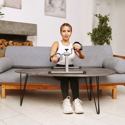 Самый простой и надежный мини-велотренажер W003XG серого цвета для домашних тренировок. Идеально подходит для тренировки рук и ног. Быстро изменить нагрузку во время тренировки можно с помощью механической ручки. При занятии обязательно использовать стул, не рекомендуется вставать на велотренажер всем весом. Проверить пульс (ЧСС) и калории можно с помощью набора DFC W117 Нагрудный кардиопояс + часы (приобретается отдельно).