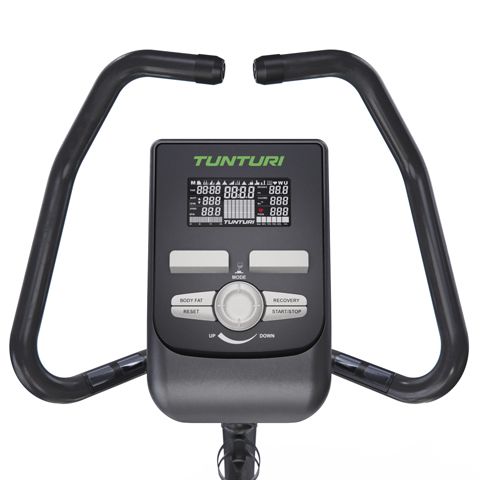 Велотренажёр Tunturi Performance E50 — это идеальный домашний велотренажер! Он предназначен для пользователей весом до 135 кг и имеет 32 уровня нагрузки, которые позволяют настроить ее в соответствии с вашей физической подготовкой и целями тренировки. Вертикальный велотренажер для ног с электромагнитной системой нагрузки и электронной регулировкой отлично прорабатывает мышцы ног и рук, а также оснащён регулируемым рулём, консолью и сиденьем для индивидуальной настройки и комфортного использования. Инерционный вес маховика вело-тренажера составляет 11 кг, что обеспечивает плавный и бесшумный ход педалей. Между стойкой руля и кожухом маховика относительно большое пространство, чтобы безопасно сесть и слезть. Прочная рама обеспечивает достаточную поддержку при посадке и спуске. Монохромный LCD дисплей размером 24 x 11 x 33 см отображает основные параметры тренировки, такие как время, расстояние, калории, скорость, уровень нагрузки, пульс, обороты в минуту, профиль тренировки и ватты. Велотренажер для ног оснащён сенсорными датчиками для измерения пульса на ручках руля. Тренировочных программ предусмотрено 20, среди которых есть программы для измерения пульса, восстановления, расхода калорий и ИМТ, пользовательский, целевые и ручной режимы, которые позволяют разнообразить тренировки и достичь лучших результатов. Также вы можете подключить тренажер к приложению Tunturi Routes. Транспортировочные ролики позволяют легко перемещать тренажер кардио, а компенсаторы неровности пола гарантируют устойчивость на любой поверхности. Есть держатель для бутылки и подставка для планшета. Кардиотренажер для рук и ног домашний Tunturi Performance E50 станет вашим отличным помощником в поддержании активного образа жизни и похудении!